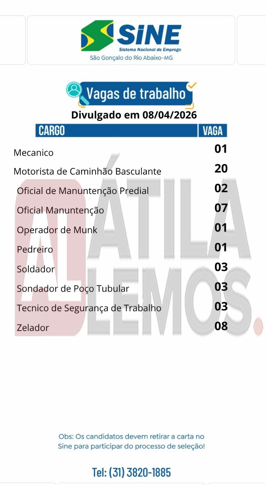 • O site www.atilalemos.com.br atua exclusivamente na divulgação de oportunidades de emprego. Não realizamos processos de seleção, entrevistas ou contratações.