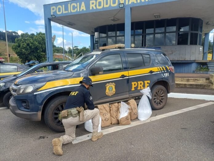 Ao verificar o porta-malas, a equipe encontrou duas caixas de papelão lacradas e um saco contendo diversos pacotes envolvidos em papel pardo. Questionado, o condutor não soube informar o conteúdo nem a origem da carga.