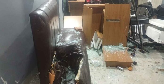 O veículo colidiu inicialmente contra outro carro e, em seguida, invadiu o estabelecimento comercial, que funciona como barbearia.