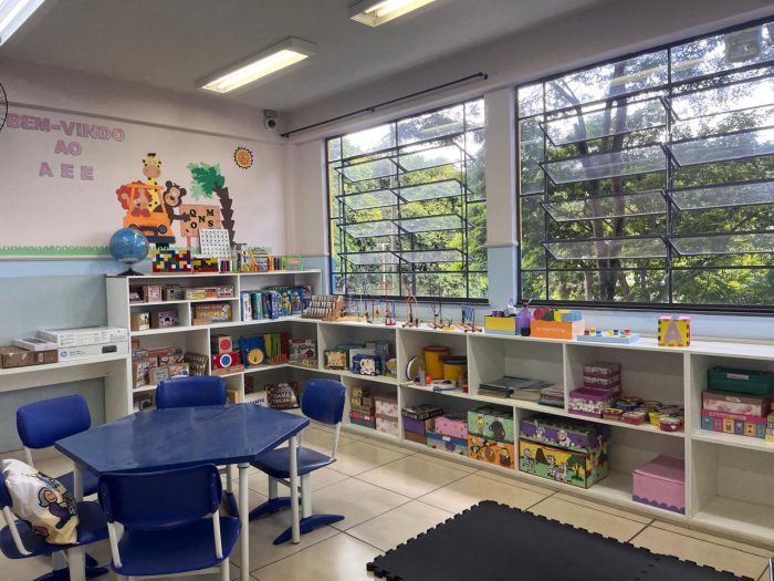 Entre os recursos disponíveis estão materiais pedagógicos em Libras e Braille, lupas, Soroban, além de mesas e equipamentos adaptados que auxiliam no processo de ensino-aprendizagem. O atendimento é realizado por professores com formação específica em Educação Especial, garantindo uma abordagem qualificada e individualizada.