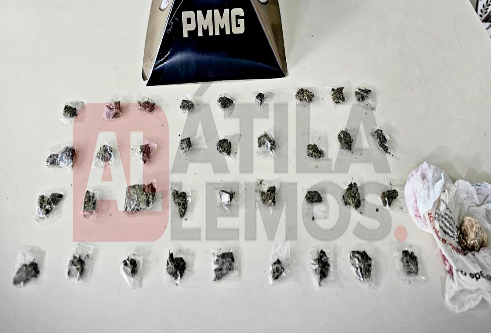 Durante buscas no local, os militares encontraram 37 buchas de maconha e uma pedra de crack. Após consulta aos sistemas de segurança, foi constatado que o suspeito possuía um mandado de prisão em aberto.